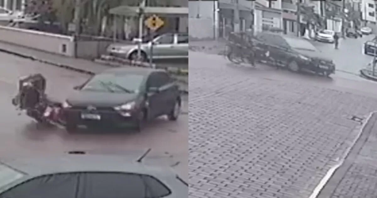 De acordo com as imagens das câmeras, o carro que seguia pela Rua das Nações sinalizou corretamente com a seta antes de entrar na via, mas o motociclista que vinha em alta velocidade acabou não conseguindo frear a tempo e colidiu com o veículo. O impacto foi forte e o motociclista foi arremessado para fora da moto.