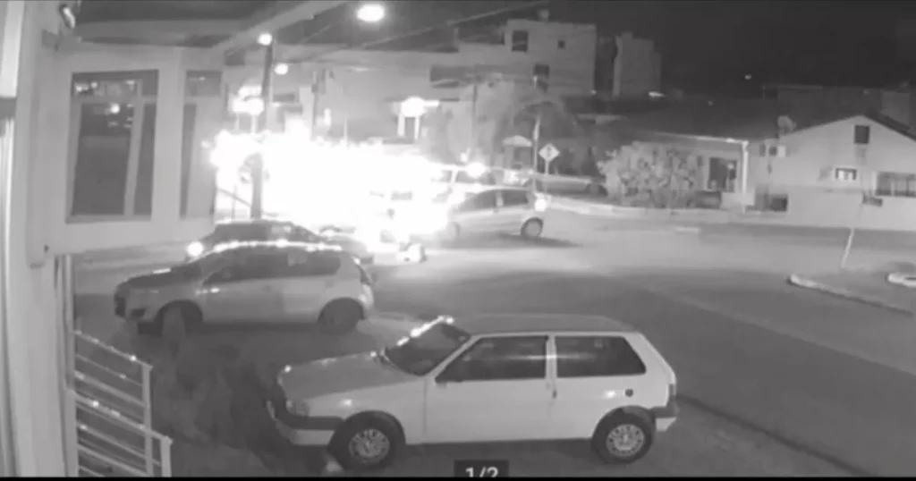 Segundo relatos de testemunhas e imagens de câmeras de segurança no local, o acidente aconteceu quando o motorista do carro avançou a preferencial da via, causando a colisão com a moto que seguia em sentido oposto. O impacto foi forte e deixou o casal que estava na moto ferido.