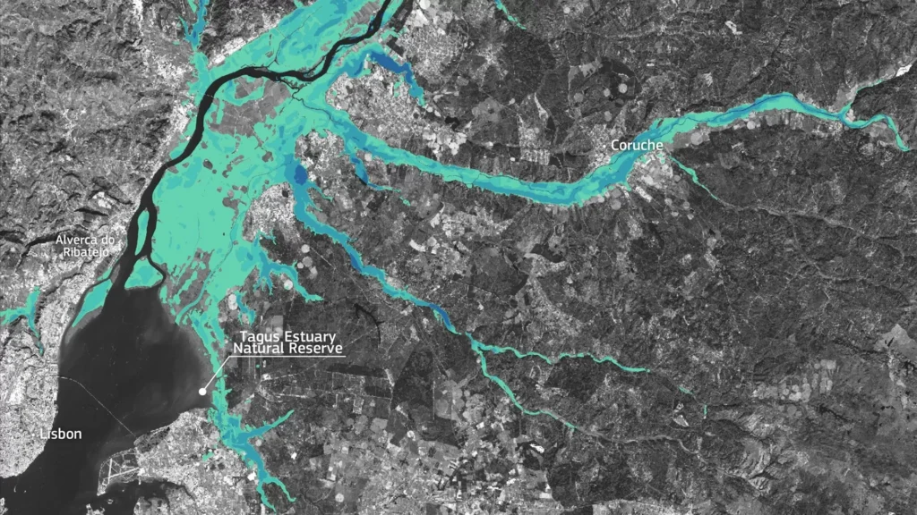 No caso da tempestade Leonardo, as imagens de satélite do Copernicus foram fundamentais para a visualização das áreas mais afetadas pelas enchentes. As imagens mostraram uma grande extensão de terrenos inundados ao longo do Rio Tejo, incluindo áreas urbanas e rurais. O Estuário do Tejo, onde o rio desagua no Oceano Atlântico, também foi gravemente afetado pelas cheias, com várias regiões ficando completamente inundadas.